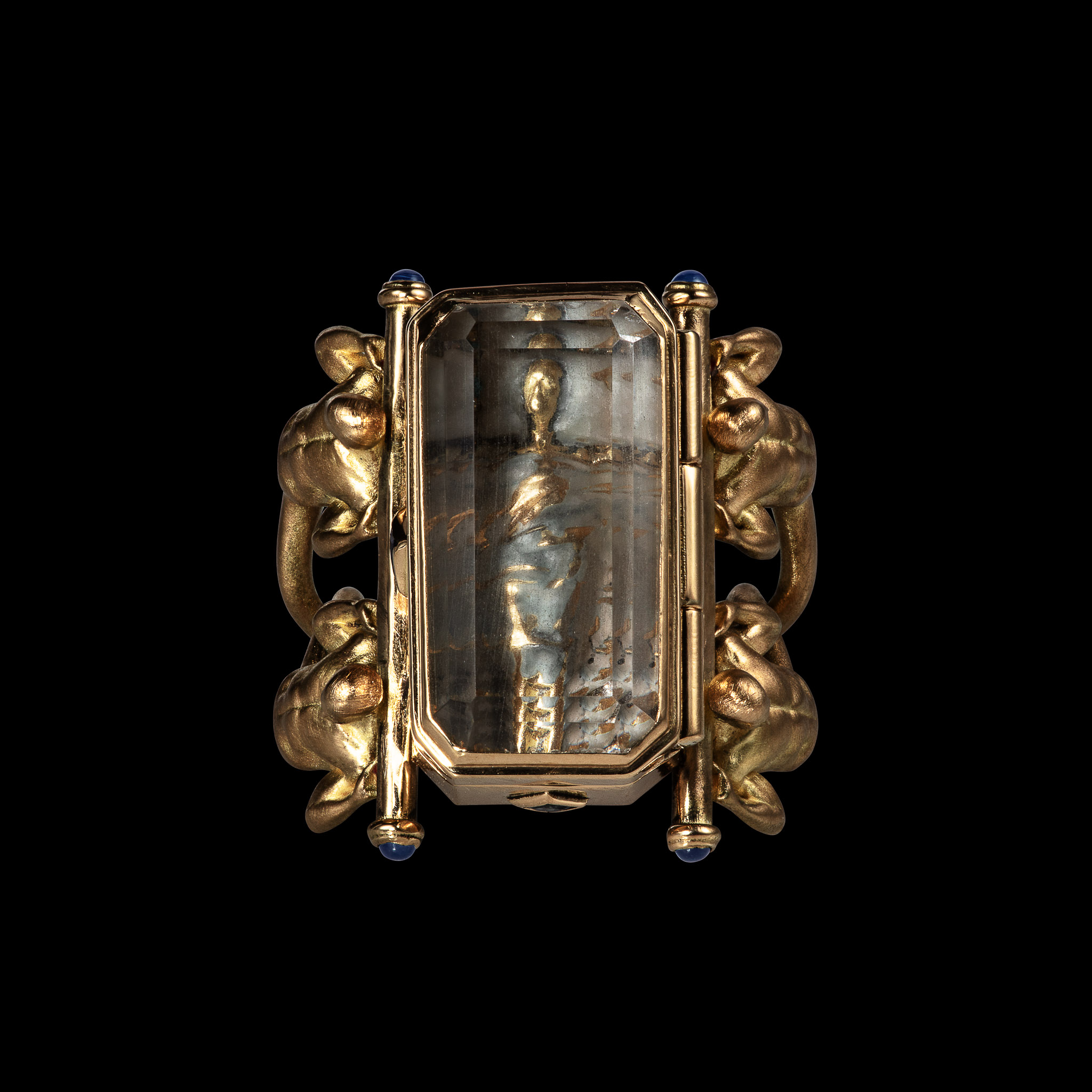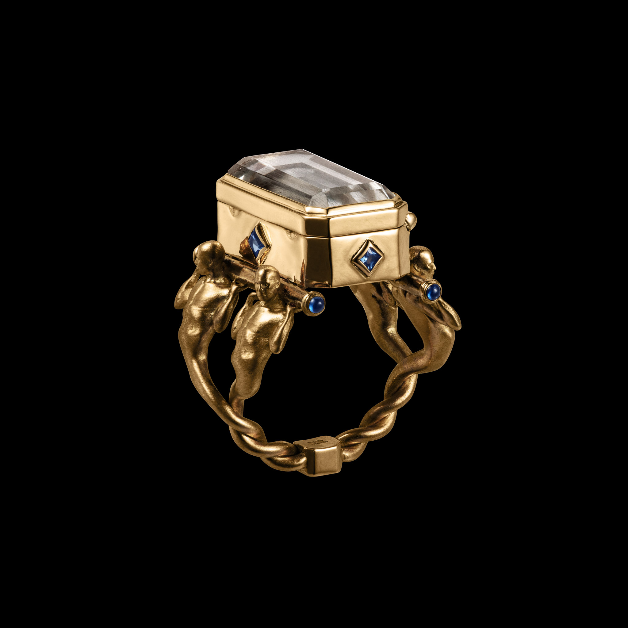 18ct SMO Gold, Sapphire, Porcelain, Rock Crystal, Diamonds